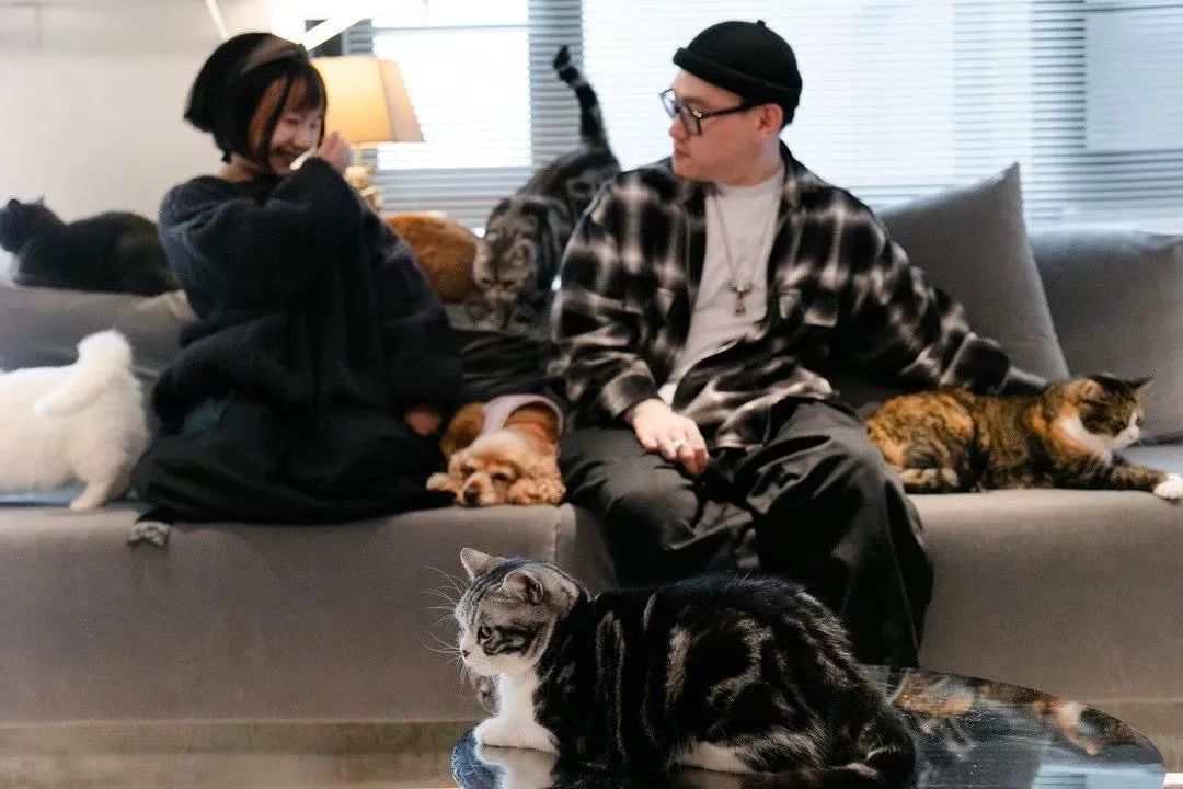 寻常巷子的寻常人家里, 猫咪们在空中跃出彩虹,在玻璃窗上呼出小小的爱心,狗儿们闪亮的眼睛中印着他和她幸福的身影,无论窗外是否放晴,这里永远都是好天气。这是2人、9猫、2狗的极乐星球,也是一对“嗜宠如命”的小夫妻的家。